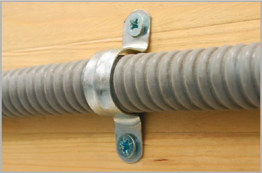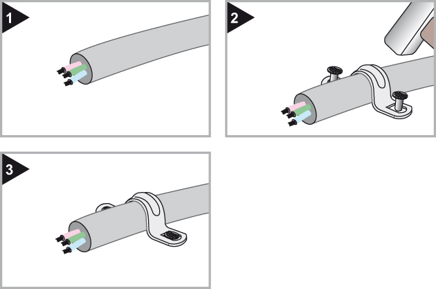 Mетална скоба, за двустранно укрепване предназначена за фиксиране на тръби и кабели.