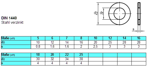 Шайба подложна кръгла, плоска, усилена DIN 1440 за щифтове с глава и отвор за шплинт. Използва се в машиностроенето, производството на инструменти и строителството. Покритие: ZN, HDG