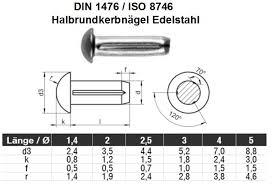 DIN 1476 Щифт цилиндричен с полуобла глава