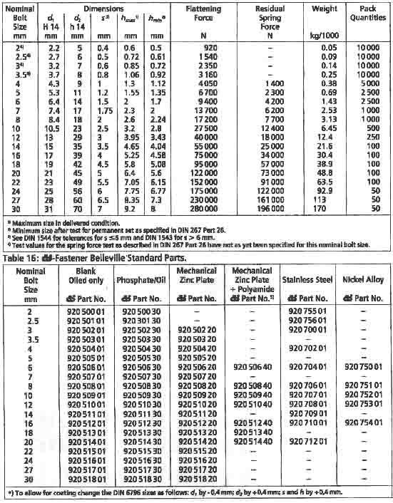 Тарелчата пружинна шайба предотвратява разхлабването на сглобката при различно радиално натоварване и са предназначени за използване с къси болтове, които предимно са подложени на натиск. Шайбите са високо напрегнати компоненти и не могат да се използват за динамично натоварване. Шайбите са за използване с болтови връзки с болтове от класове 8.8 до 10.9 (както е посочено в ISO 898 Част 1).