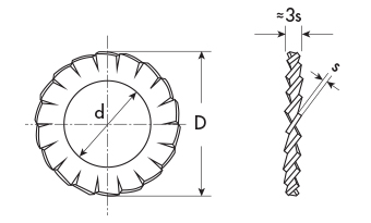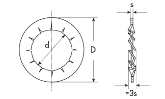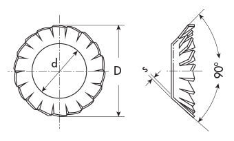 Шайба осигурителна, назъбена бива външно назъбена- DIN 6798 tip A , вътрешно назъбена- DIN 6798 tip J и Назъбена конусна осигурителна шайба-- DIN 6798 tip V.