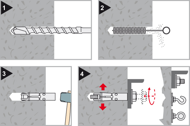 Анкер за тежки натоварвания за монтаж в плътни стоителни материали.Монтажът на анкера се извършва независимо от този на закрепвания детайл, който може да се инсталира по-късно. Позволява демонтаж и смяна на закрепвания детайл. Типът на анкера позволява да се използват болтове,шпилки,отворени и затворени куки с метрична резба като окомплектоващи елементи.