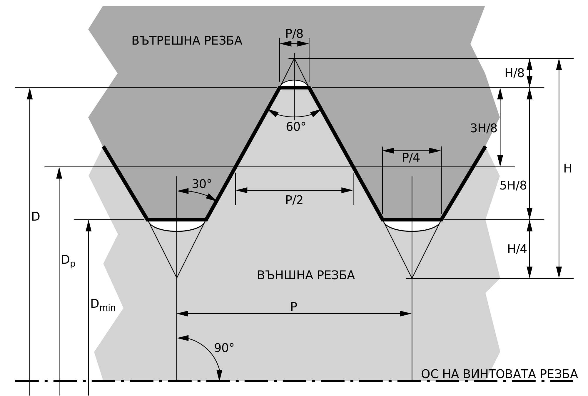 - Дясната резба не се маркира, но ако болта е с лява резба – маркира се със стрелка, обратна на часовниковата.