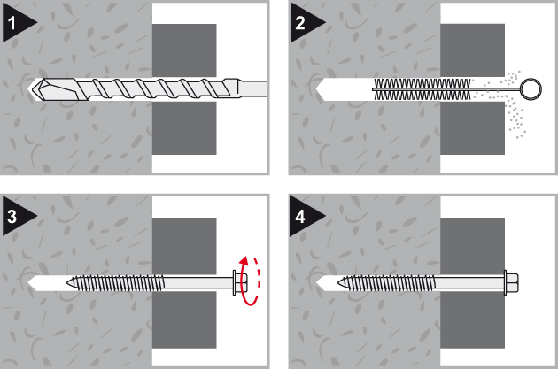 Винт за директен монтаж, или още наричан винтов анкер, служи при закрепването на различни дървени детайли, конструкции, дограма и много други в основа от бетон, камък или др плътна основа. Резбата е тип HILO, Ф6.6mm, която спомага за по-добро сцепление между винта и бетонната основа. Технологичен отвор в основата следва да е Ф5 мм. Главата е формован шестограм SW 8mm с фланшова част Ф12 мм. за повишаване опората на винта, в детайла.
